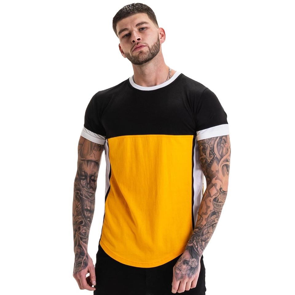 เสื้อยืดผู้ชายดีไซน์ล่าสุดแบบขายส่ง ลายบล็อกสี เสื้อยืดกีฬาผู้ชายผ้าสั่งทำพิเศษ