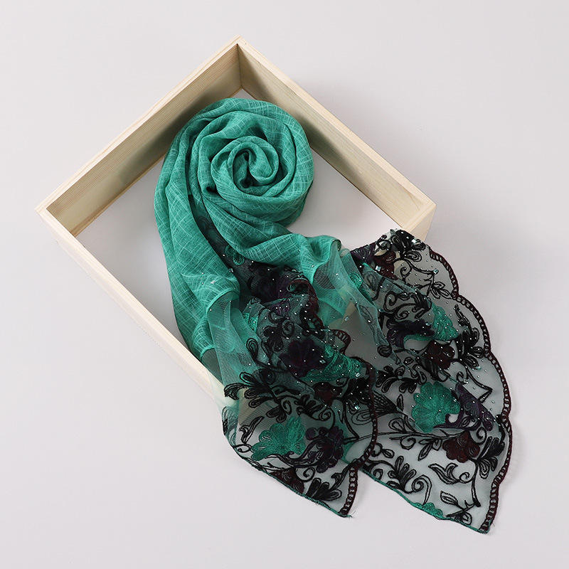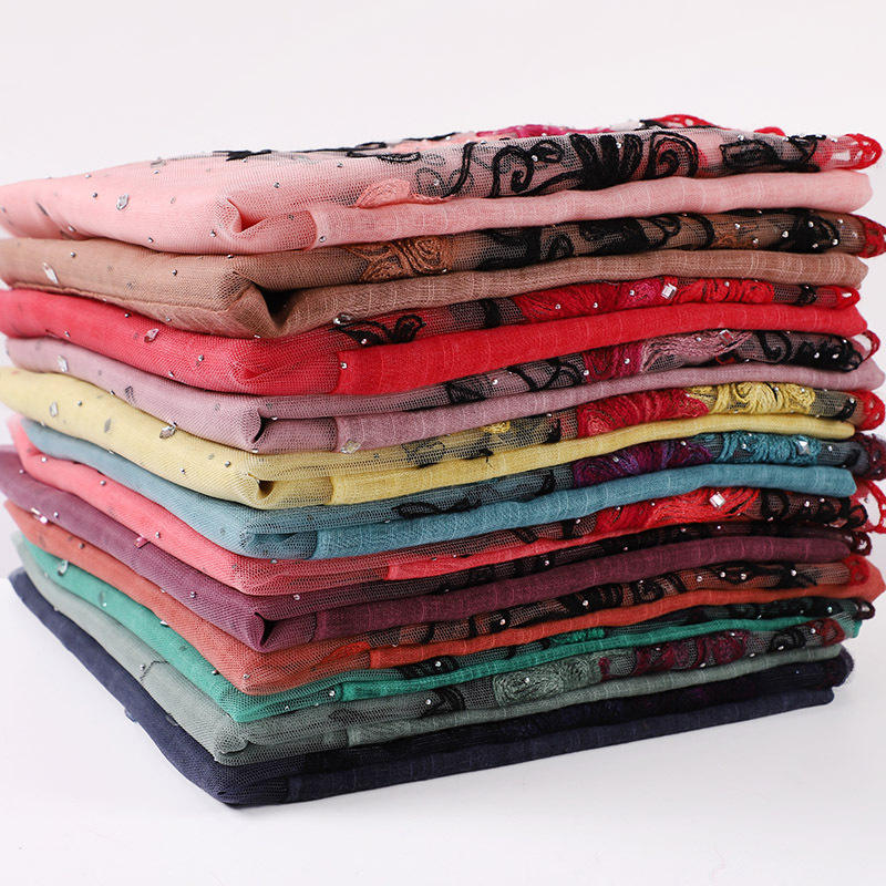 ฮิญาบผ้าลูกไม้โพลีเอสเตอร์แฟชั่นล่าสุดสำหรับผู้หญิงมุสลิมฮิญาบปักลายดอกไม้ติดเพชรผ้าโพกศีรษะจากมาเลเซียขายดี