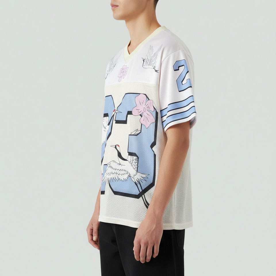 เสื้อฟุตบอลคุณภาพสูงแบบอเมริกัน ผ้าโพลีเอสเตอร์ตาข่าย ไซส์ใหญ่ สำหรับทีม ขายส่งรุ่นล่าสุด