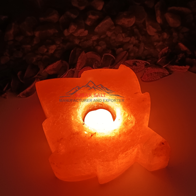 โคมไฟหินเกลือหิมาลัยทรงใบไม้เชิงเทียนแกะสลักเป็นมิตรต่อสิ่งแวดล้อม