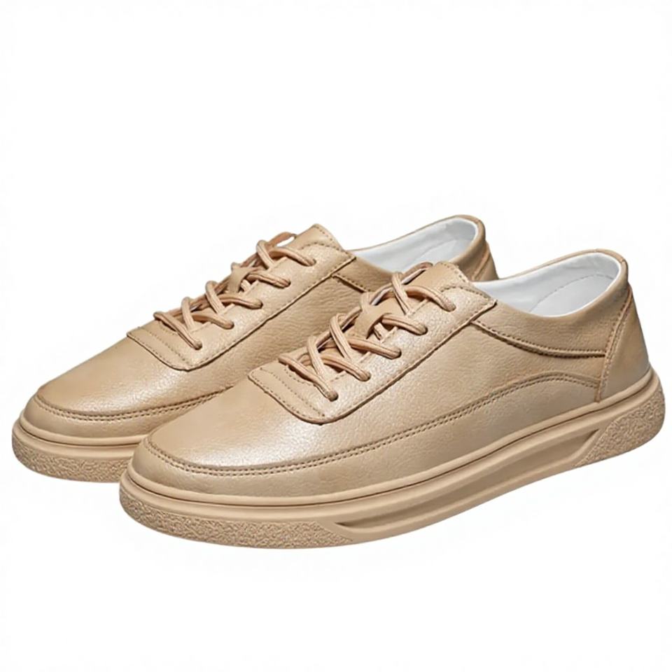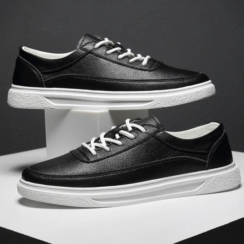 รองเท้าผ้าใบหนังแท้ผู้ชาย/ผู้หญิง สไตล์สปอร์ต แบบสวม พื้นหนา ลำลอง วิ่งได้ สีขาว แฟชั่น นักเรียน เรียบง่าย รองเท้ากีฬา