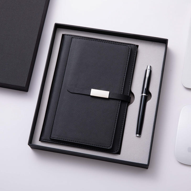 ชุดของขวัญสมุดโน้ตหนังชุดสมุดโน๊ตแม่เหล็กสีดำชุดกล่อง A5สมุดโน๊ตและปากกา