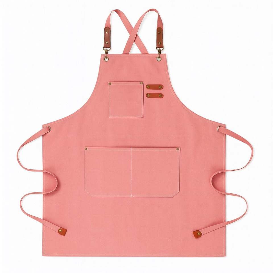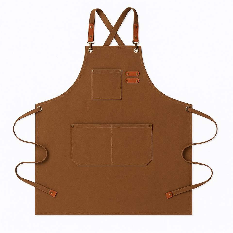 ผ้ากันเปื้อนหนังแท้สำหรับงานขายส่ง พร้อมผ้าแคนวาส ปิดด้วยกระดุมแป๊ก มีช่องเก็บของ เหมาะสำหรับร้านอาหารและบาร์ - ดีไซน์สำหรับทุกเพศ