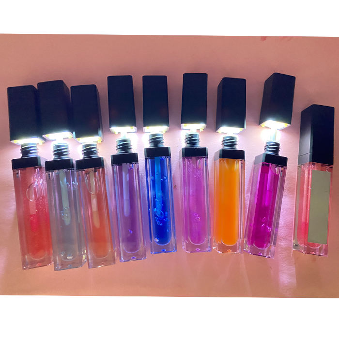 ลิปกลอสน้ำมันแบบวีแกนหลอดไฟ LED ลิปกลอสพร้อมกระจกโลโก้ตามสั่ง