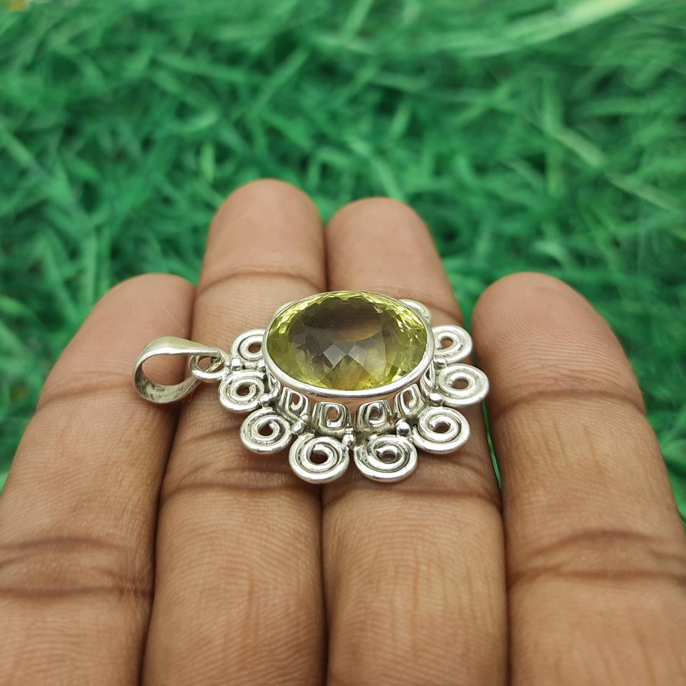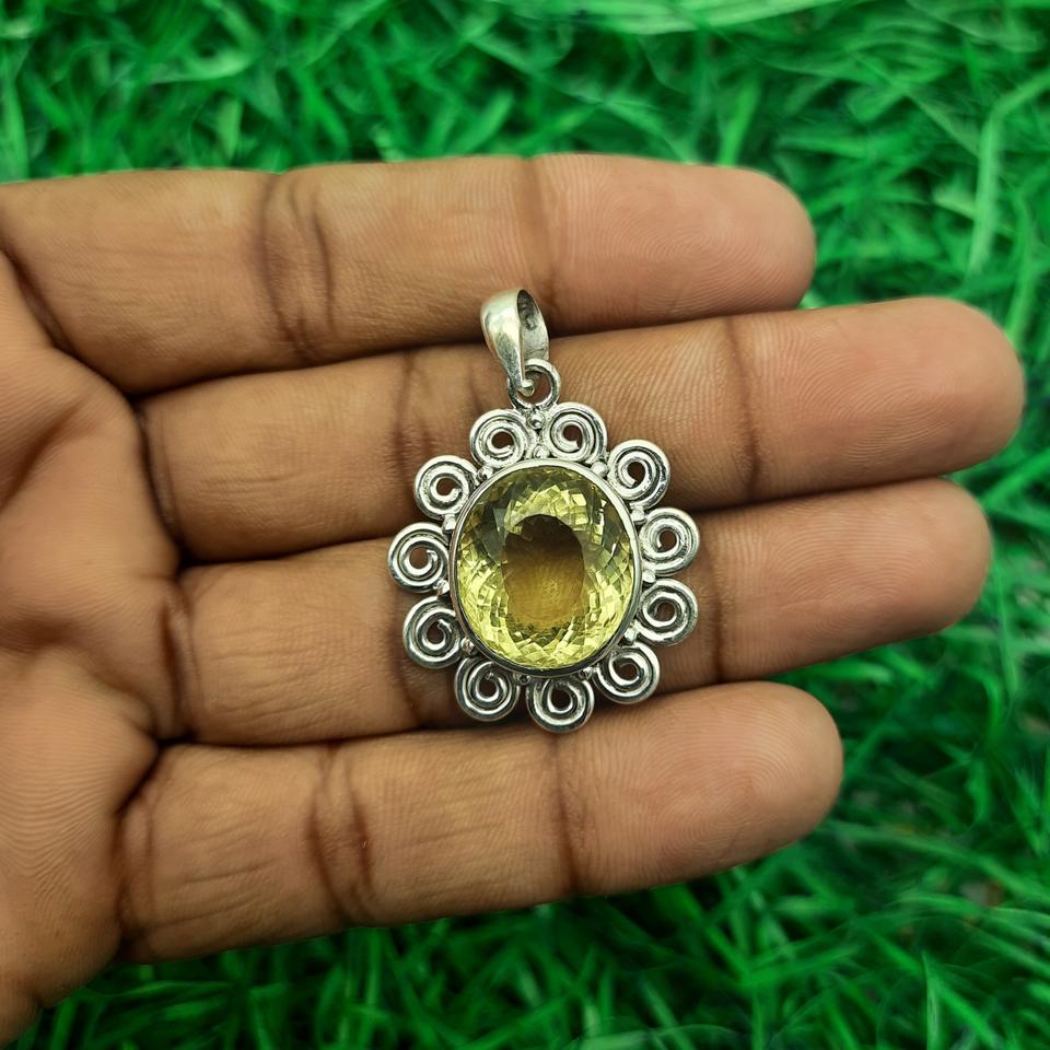 จี้เลมอนโทแพซ925อัญมณีเงินสเตอร์ลิงเครื่องประดับแฮนด์เมดเครื่องประดับทำมือสำหรับผู้หญิง925คุณภาพสูงเงินสเตอร์ลิง