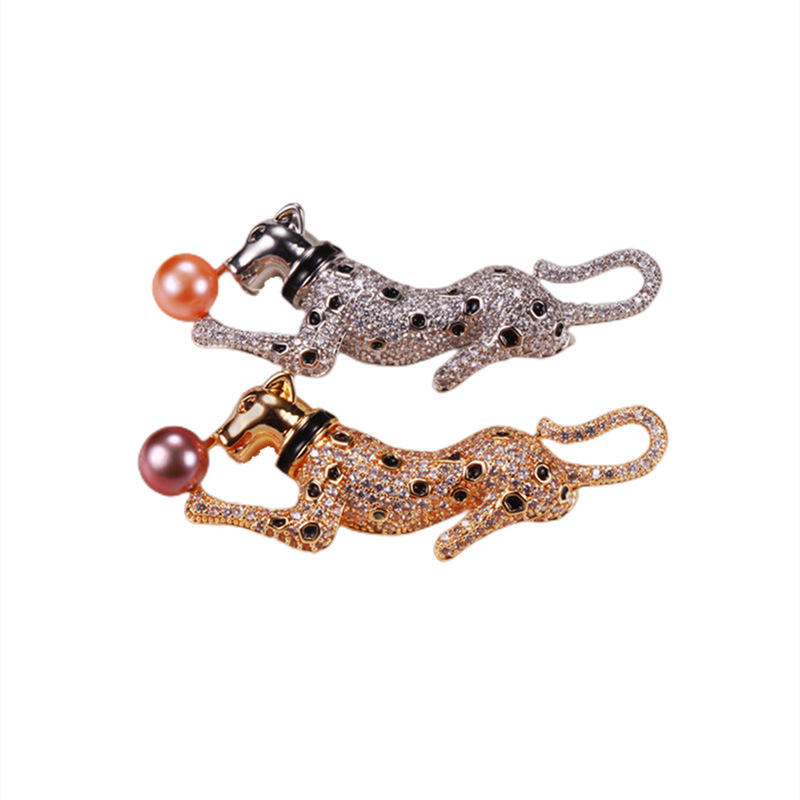 เข็มกลัดโลหะผสมทองแดงลายเสือดาว ขายส่ง สำหรับงาน DIY พร้อมไข่มุกน้ำจืด ติดเสื้อ แฟชั่น