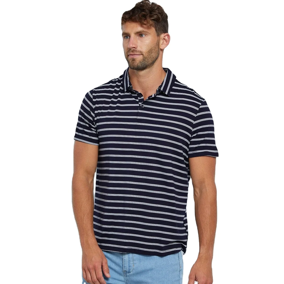 เสื้อโปโลลายทางแขนสั้นของผู้ชายระบายอากาศได้ดีปรับแต่งได้ออกแบบแฟชั่นพิมพ์ลายสไตล์บังคลาเทศ