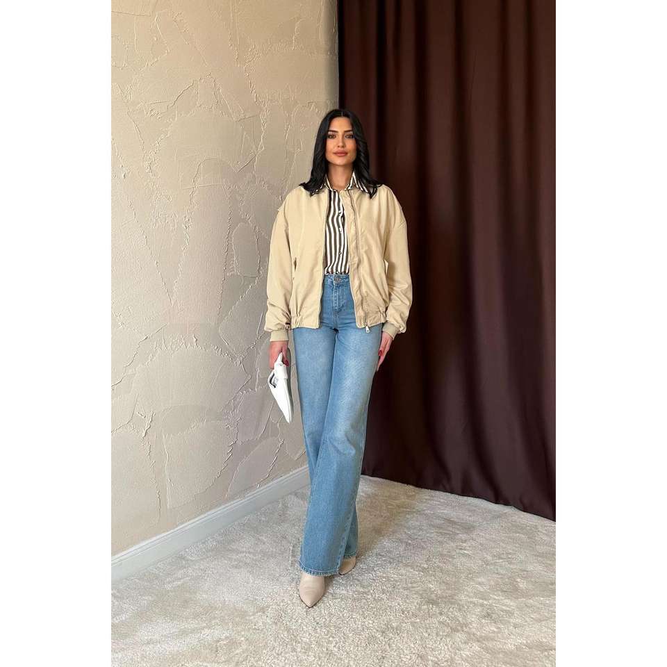 เสื้อแจ็คเก็ตบอมเบอร์สีกากีอ่อนสำหรับผู้หญิง ขายส่ง กันลม บุด้วยโพลีเอสเตอร์ทอ เสื้อคลุมลำลอง