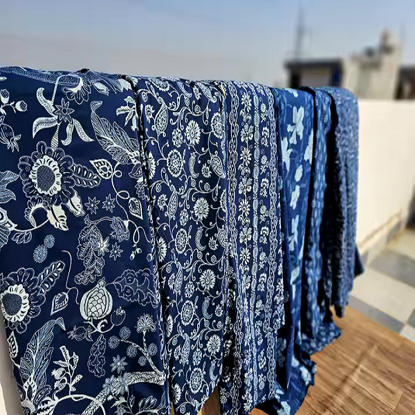 สไตล์:ผ้าพิมพ์ลายบล็อก, ลายที่กำหนดเอง, พิมพ์สีย้อม, พิมพ์ลายดอกไม้, สีน้ำเงินคราม