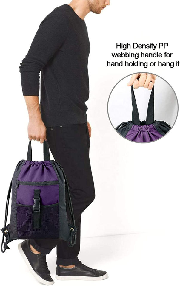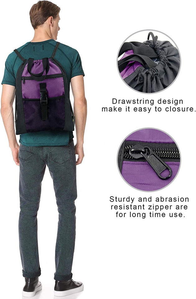 Wholesale Lightweight Nylon Cardura Sports Backpack Drawstring Gym Bag with Zipper Pocket for Gym Use