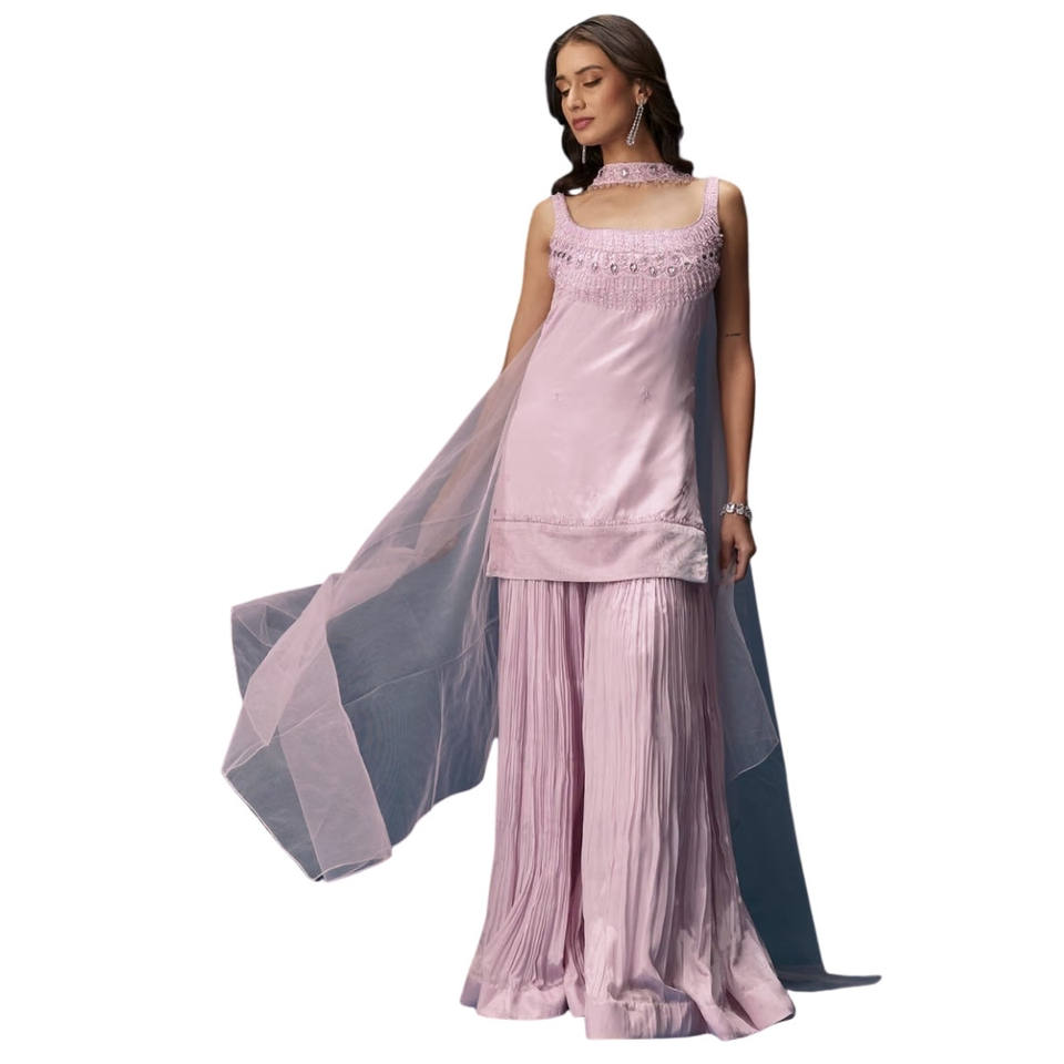 ชุดสูทชาราไลแลคพร้อมโชกเกอร์แต่งตะเข็บย่นชุดสำหรับงานแต่งงานงานเลี้ยงต้อนรับเทศกาล