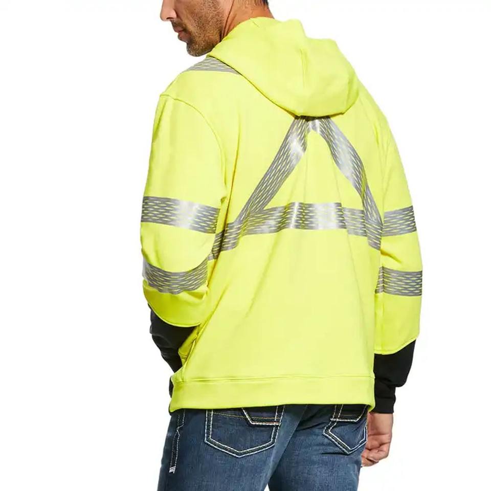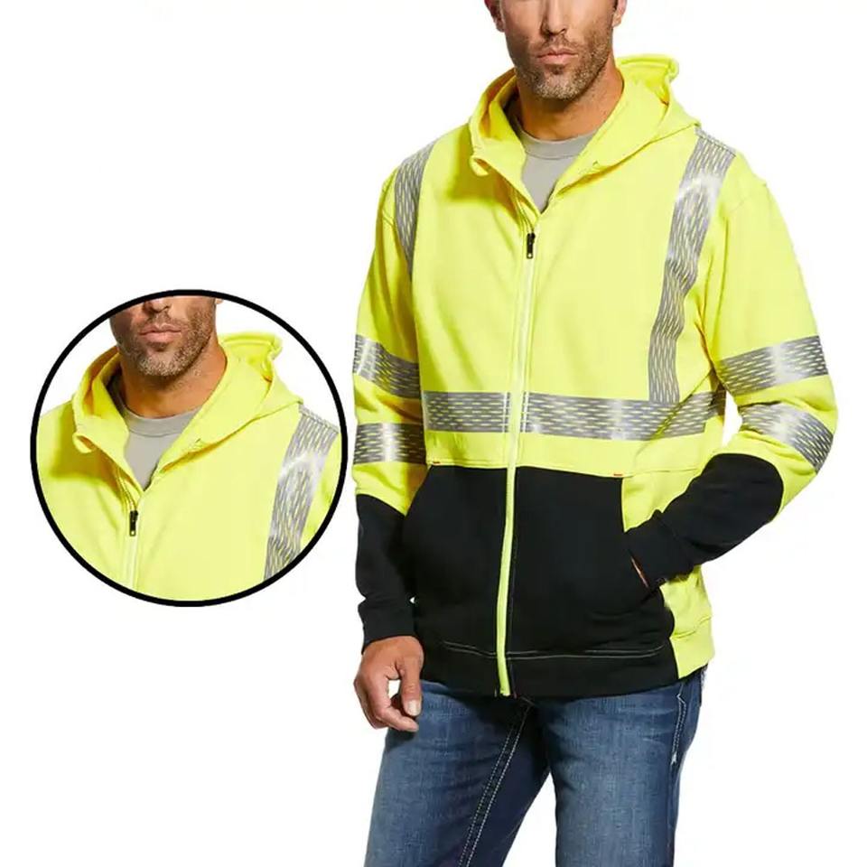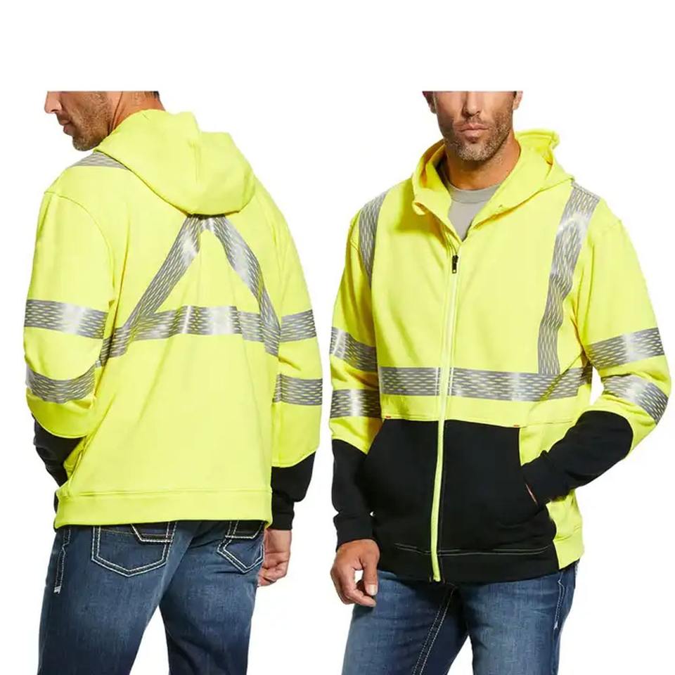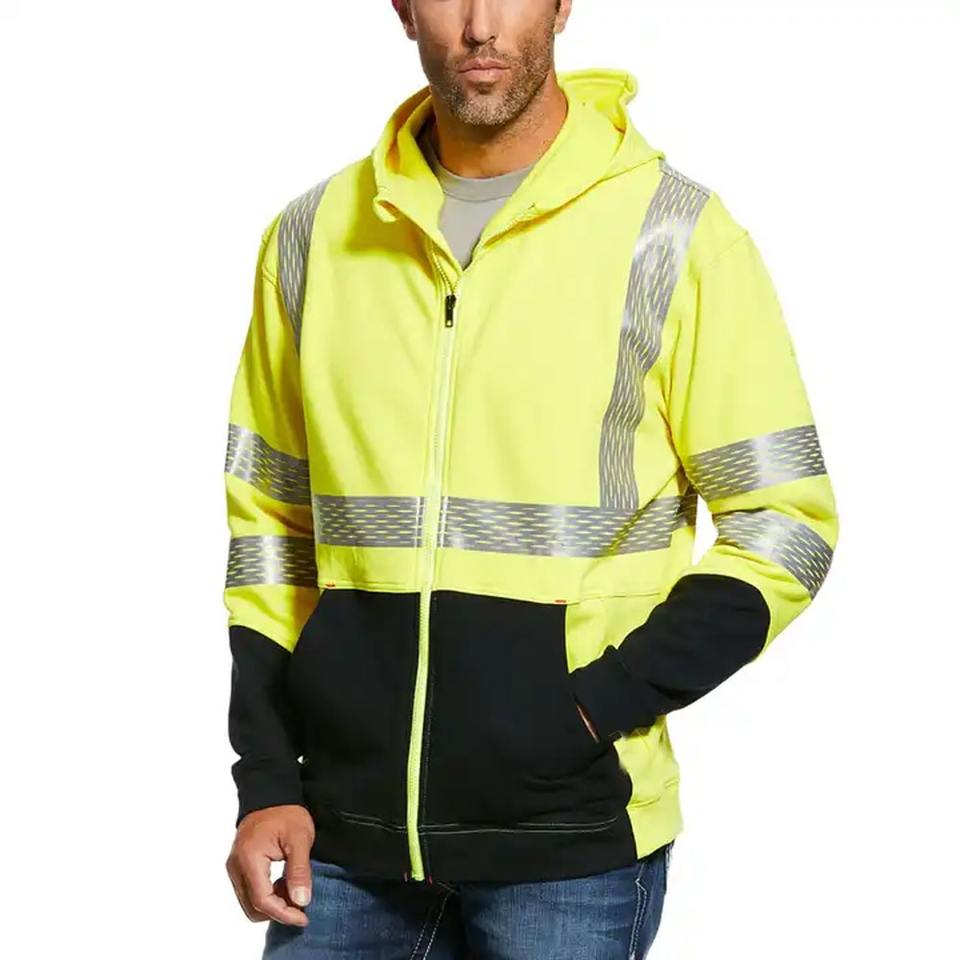 แจ็กเก็ตซิปสะท้อนแสงสีเหลืองมะนาวชุดทำงานก่อสร้างสะท้อนแสงมองเห็นได้ชัดเจน