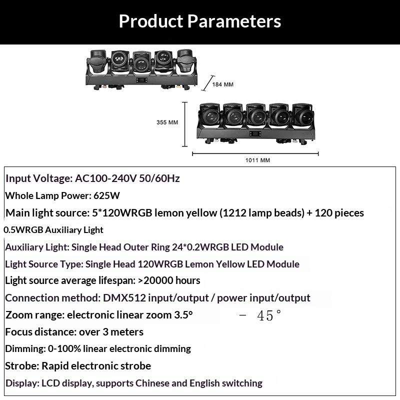 ไฟเวทีแบบเคลื่อนที่เชิงเส้นสำหรับขายส่ง, ไฟวอชและบีม RGB 5x120W สำหรับโครงการวิศวกรรมและสถานที่ขนาดใหญ่