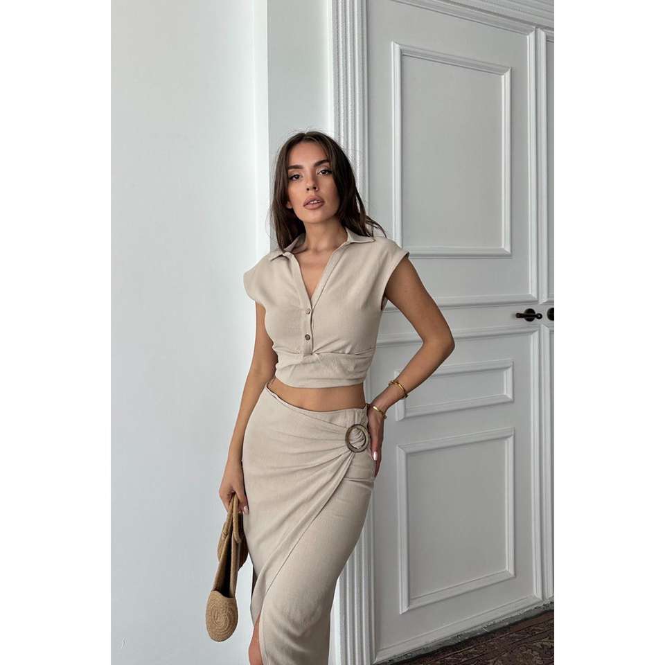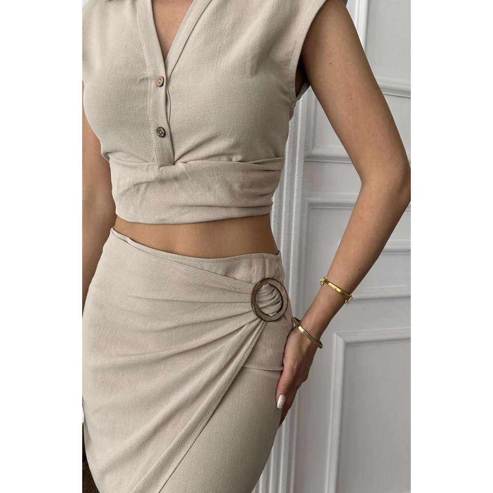 ชุดเสื้อแขนกุดผ้าลินินคอตตอนและกระโปรงสำหรับผู้หญิง สไตล์มินิมอล ระบายอากาศได้ดี สีวีซ่า สไตล์นอร์มคอร์ ขายส่ง