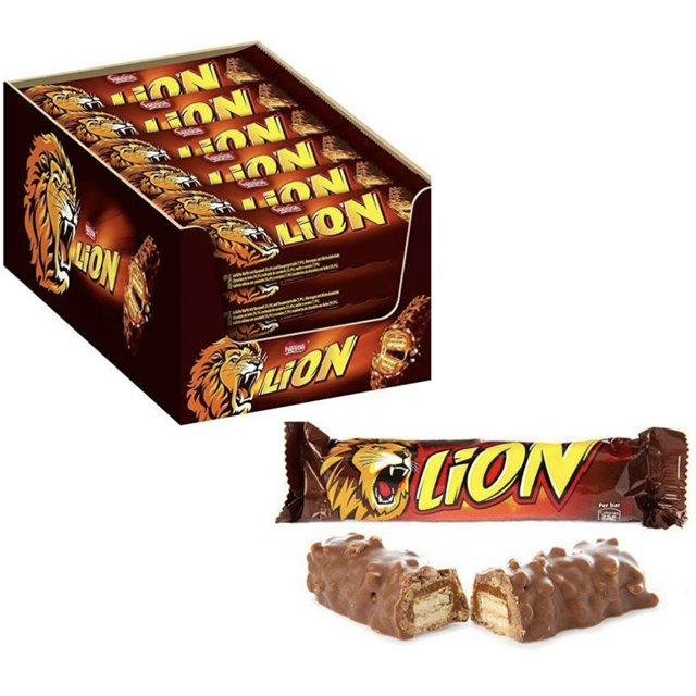 ช็อกโกแลตแท่งไลออนขายส่ง 24 ชิ้น x 42 กรัม / ซีเรียลอาหารเช้าไลออนรสคาราเมลและช็อกโกแลต อุดมด้วยไฟเบอร์ 400 กรัม