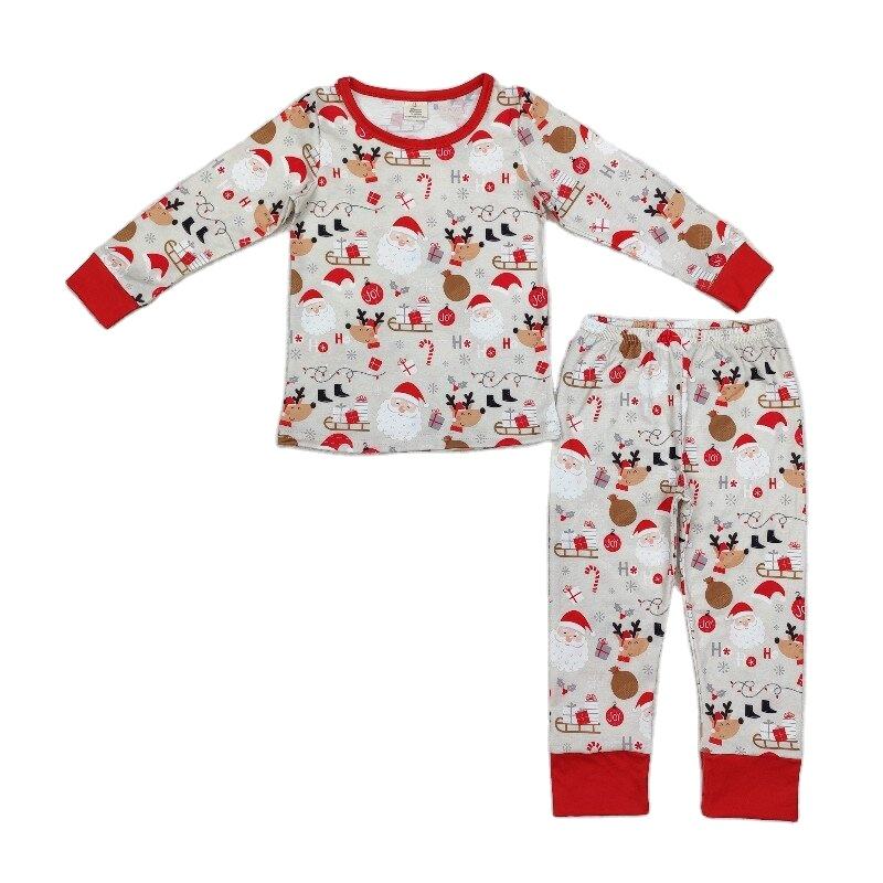 ชุดนอนแขนยาวสำหรับเด็กผู้ชายวัยหัดเดินชุดพิมพ์ลายวัวขนมคริสมาสต์สไตล์บูติกสำหรับเด็กเล็ก