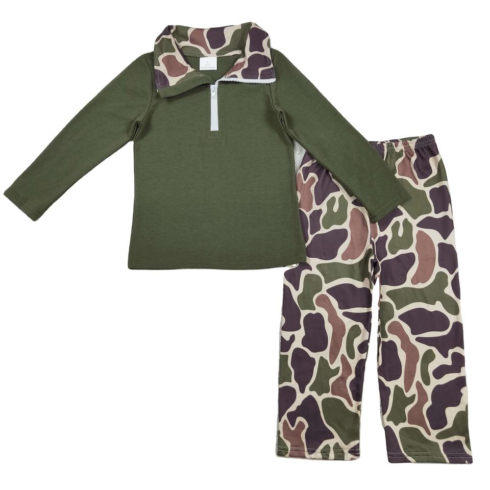 Wholesale Little Boy Boutique green camo Print Fall Outfits Toddler Boy Long Sleeve Pajamas Clothing Set Cute for Kids