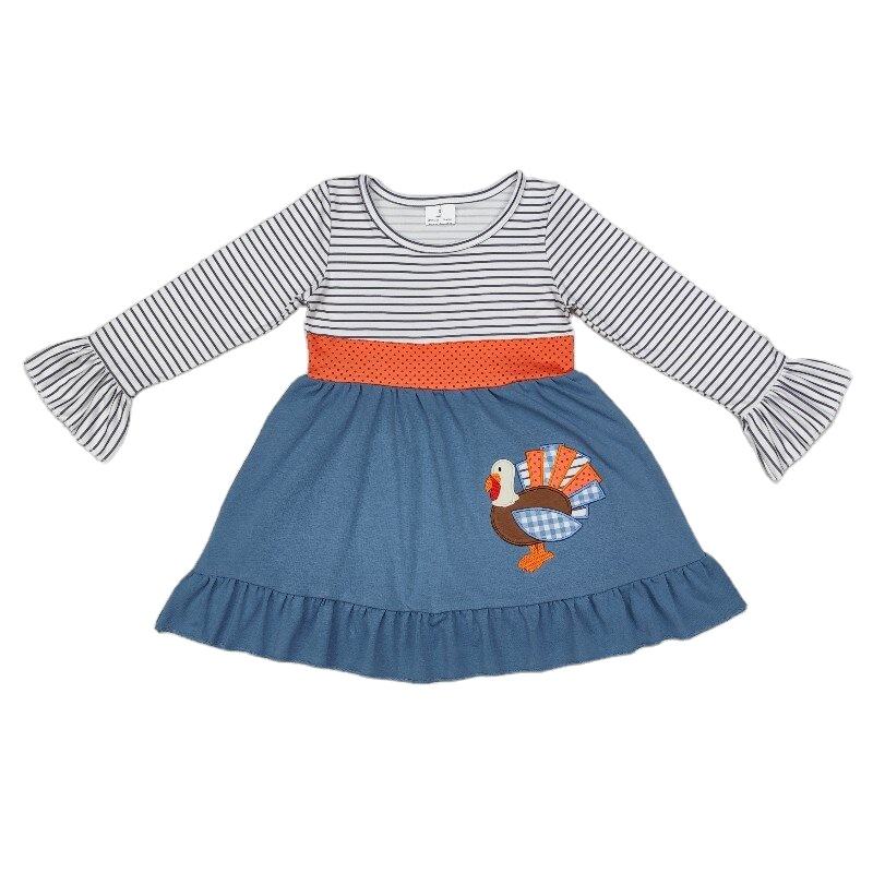 ชุดเดรสแขนยาวสำหรับเด็กชุดเดรสแบบพี่น้องแขนยาวลายทางบูติก