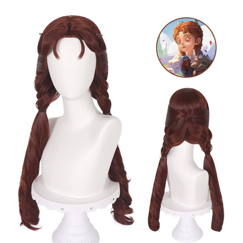 วิกผมสำหรับเด็กผู้หญิงตัวเล็กยาว70ซม. วิกผมอะนิเมะหยิกสีแดงน้ำตาลตัวตน V สังเคราะห์สำหรับงานปาร์ตี้ฮาโลวีน