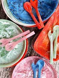 ชุดช้อนเสิร์ฟอาหารด้ามยาวทำจากเรซินเครื่องมือห้องครัวชุดช้อนเสิร์ฟสลัดทุกสี