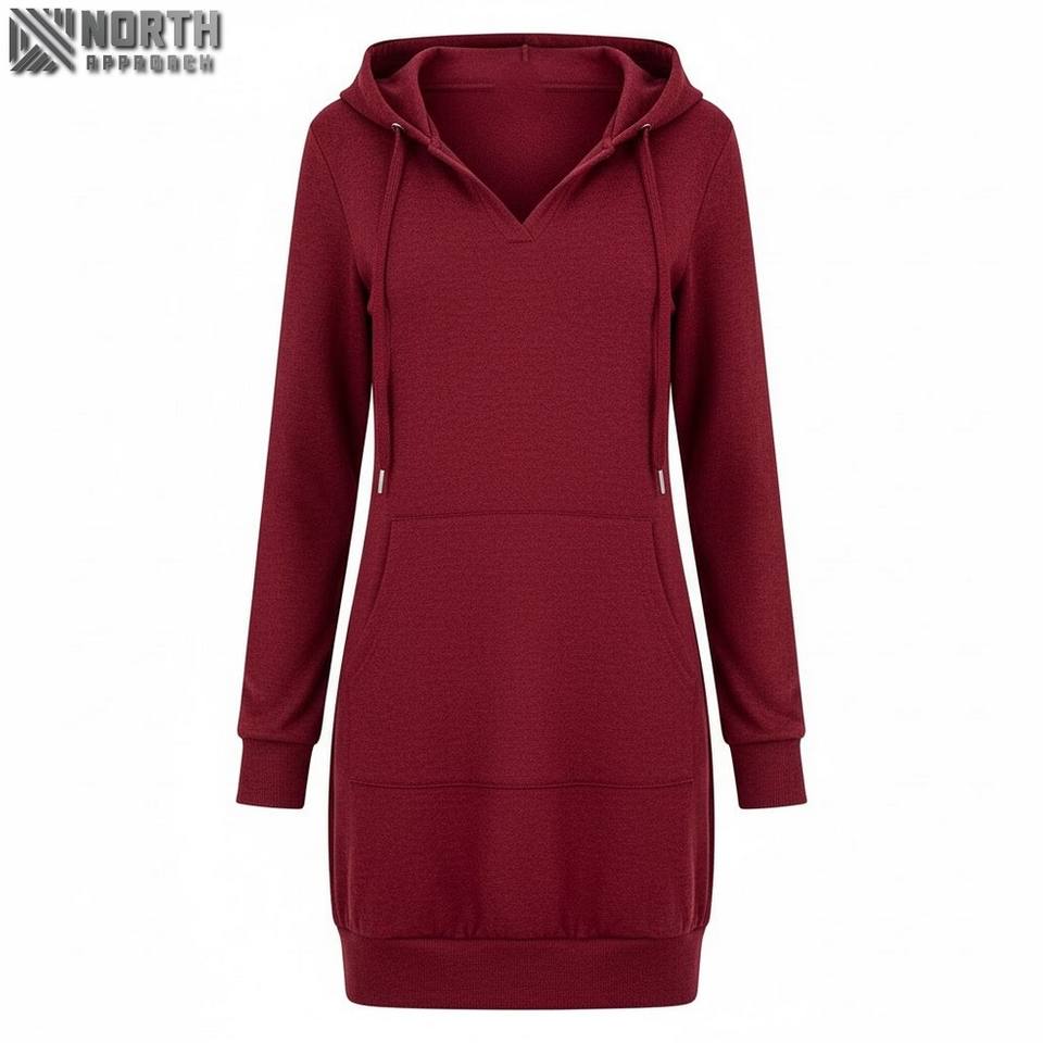 เดรสมีฮู้ดแขนยาวสำหรับผู้หญิงชุดมีฮู้ดคอวี450มีฮู้ดกำหนดได้เอง