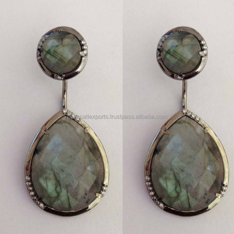ต่างหูหินลาบราดอไรต์สแตนเลสแฟชั่นจี้สำหรับทำและหาส่วนประกอบ