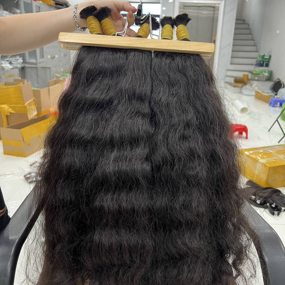 วิกผมยาวสีดำแบบลอนตามธรรมชาติแบบเวียดนาม