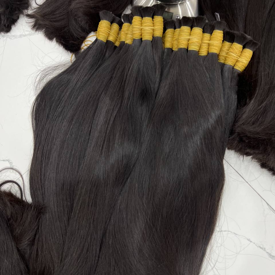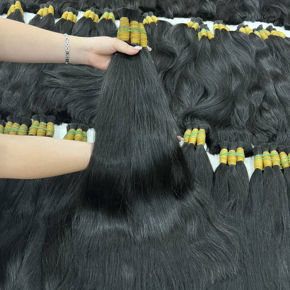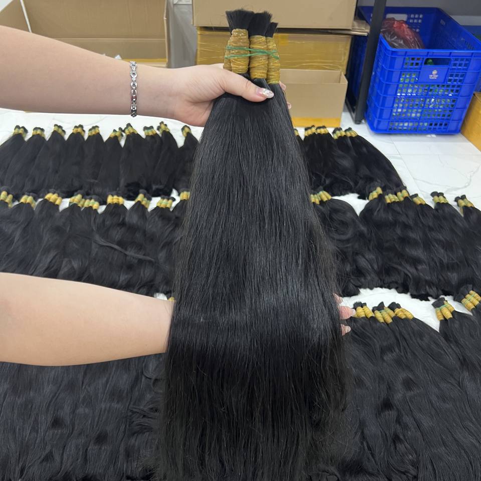 ขายส่งผมยาวตรงดิบธรรมชาติสีดําในผู้ขายต่อผมมนุษย์ชาวเวียดนามจํานวนมาก