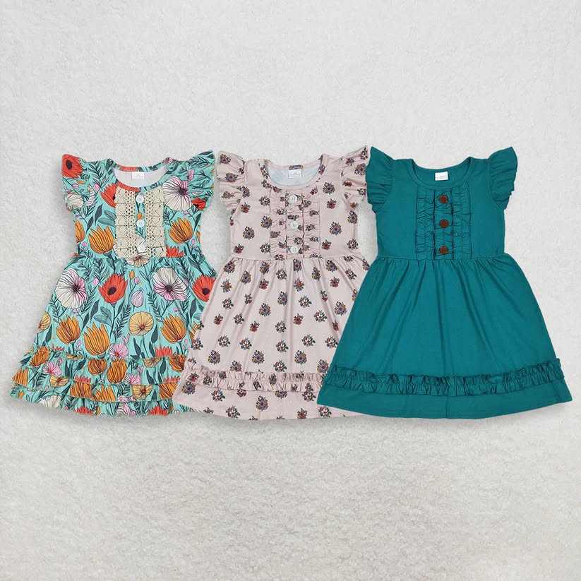 เดรสเด็กผู้หญิงแขนระบายยาวคลุมเข่า ลายดอกไม้สไตล์วินเทจ ผ้าโพลีเอสเตอร์/คอตตอน ระบายอากาศได้ดี เหมาะสำหรับฤดูร้อน ขายส่ง