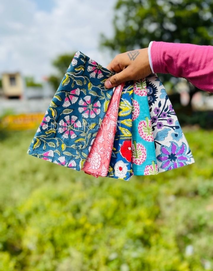 ชุดผ้าเช็ดปากผ้าฝ้ายงานแฮนด์เมดแบบมิกซ์แอนด์แมทช์ใช้ซ้ำได้สำหรับงานแต่งงานดีไซน์งานพิมพ์ด้วยมือ