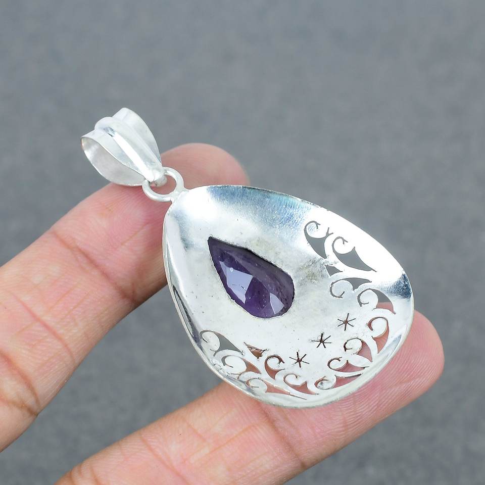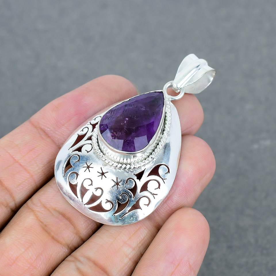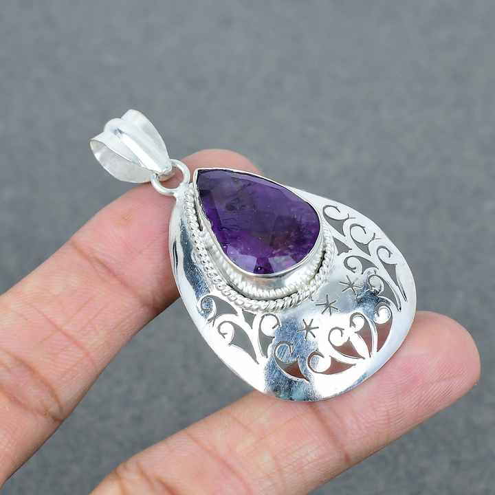 Wholesale Lot Handmade Brass Natural Amethyst Silver Plated Pendants Fashionable Gemstone Necklace for Women Engagement Wedding