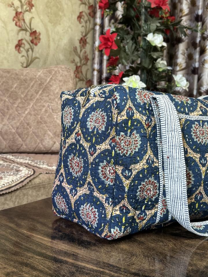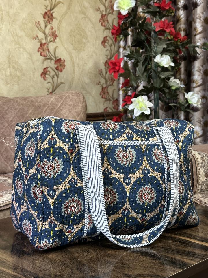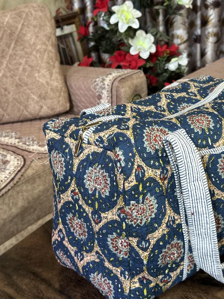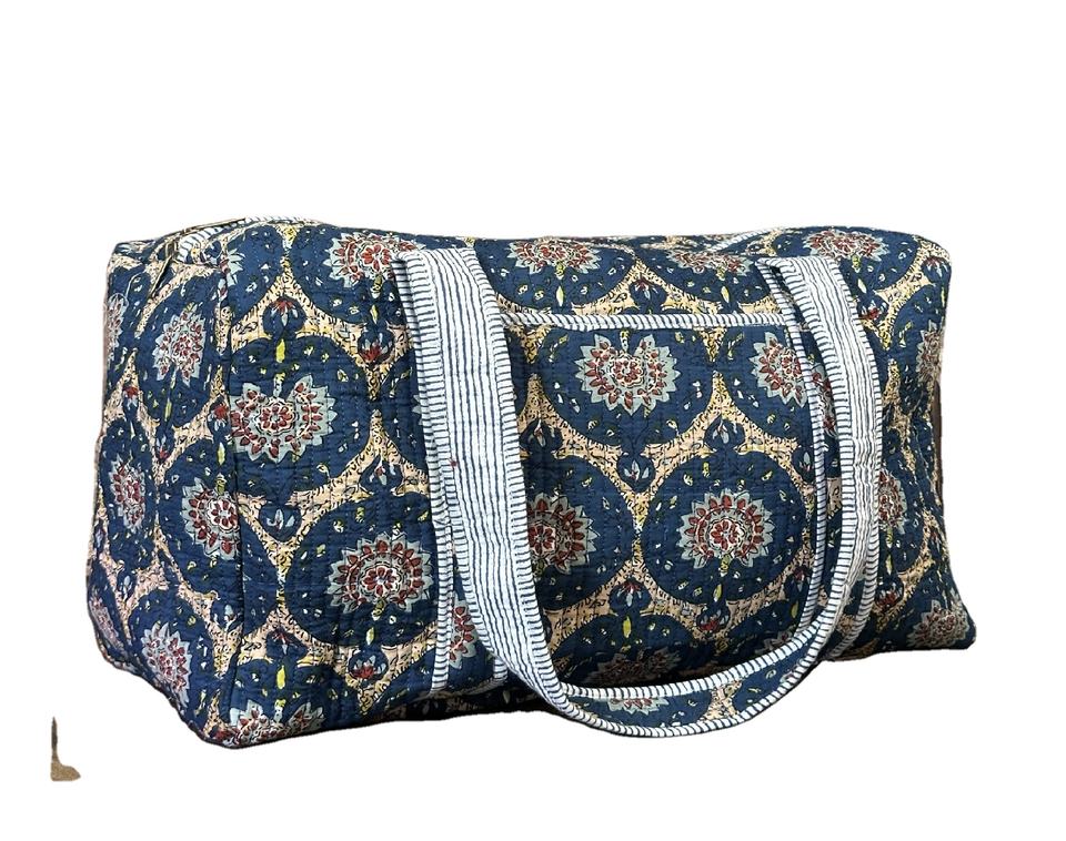 กระเป๋าเดินทางขนาดใหญ่ทำจากผ้าฝ้ายพิมพ์ลายทำมือกระเป๋าสำหรับไปยิมมีซิปใช้งานได้หลากหลาย