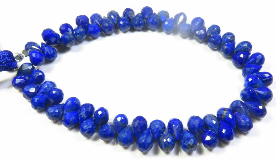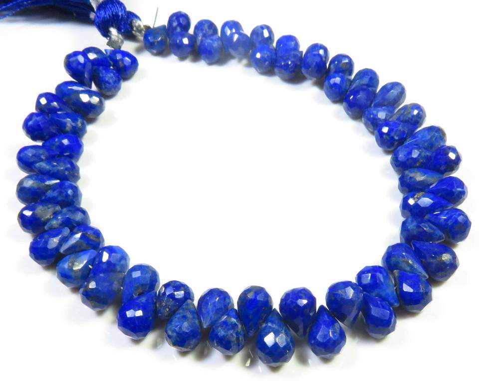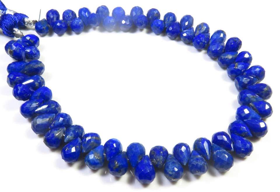 ลูกปัดเจียระไน Lapis Lazuli briolette ขนาด7-8มม. สีฟ้าลูกปัดเกลียว8 "เส้นพลอยธรรมชาติทรงหยดน้ำ