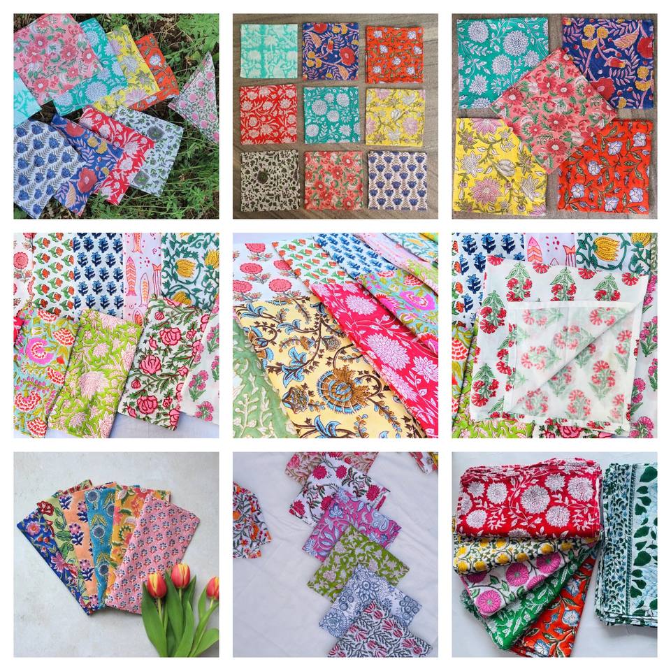 ผ้าเช็ดปากพิมพ์ลายดอกไม้ทำจากผ้าฝ้ายธรรมชาติหลายลายดอกไม้สำหรับงานแต่งงานบ้านไร่