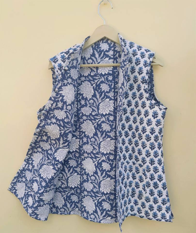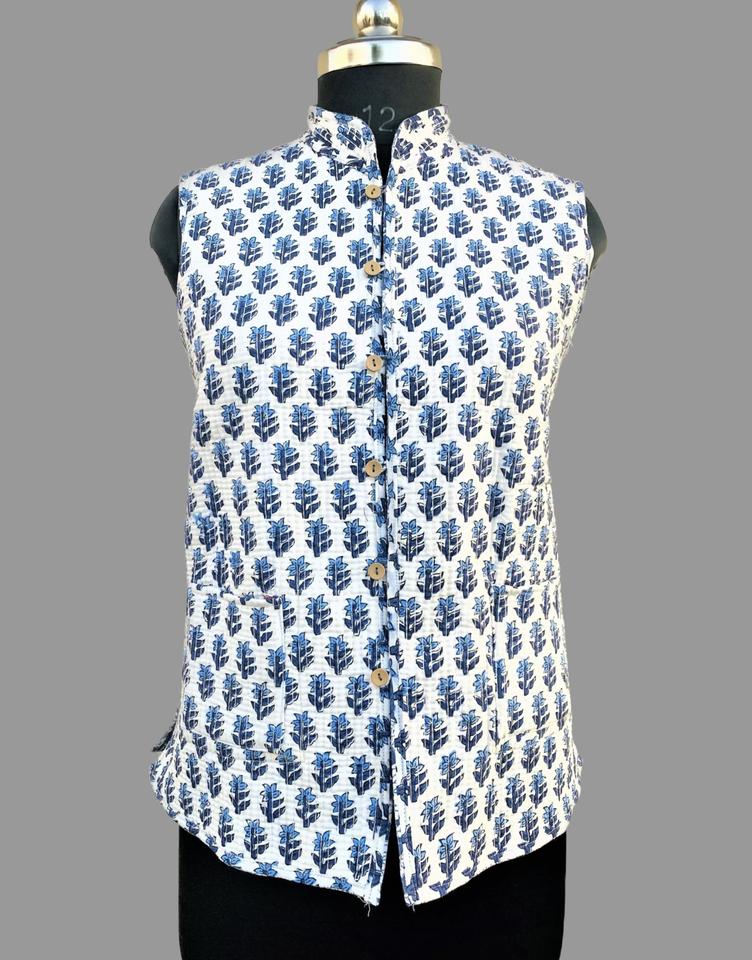 เสื้อแจ็คเก็ตผ้าควิลท์ทำมือแบบไม่มีแขนสำหรับฤดูหนาว ยูนิเซ็กซ์ ตกแต่งด้วยกระดุมลายดอกไม้ สไตล์โบฮีเมียน/คลาสสิก อินเดีย ขายส่ง