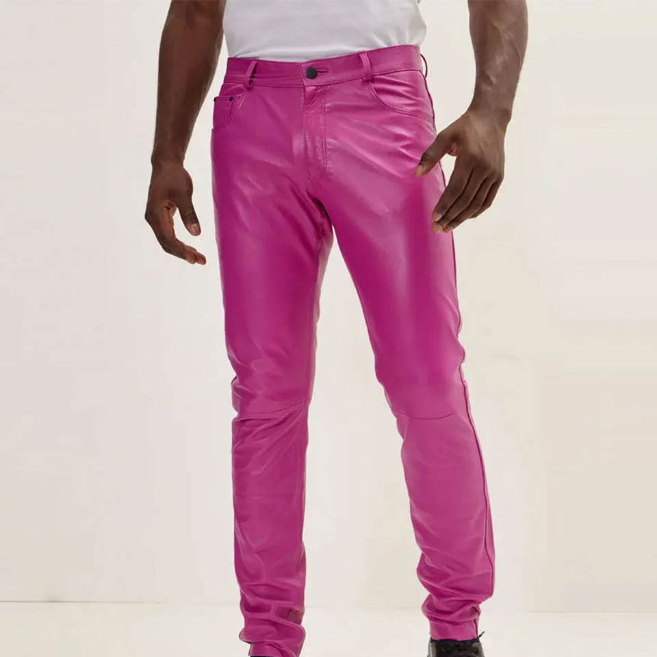 กางเกงหนังผู้ชายขายส่ง MOQ ต่ำ รับผลิตตามแบบ ดีไซน์ล่าสุด กางเกงหนังผู้ชายแบบฟอก สำหรับขายออนไลน์