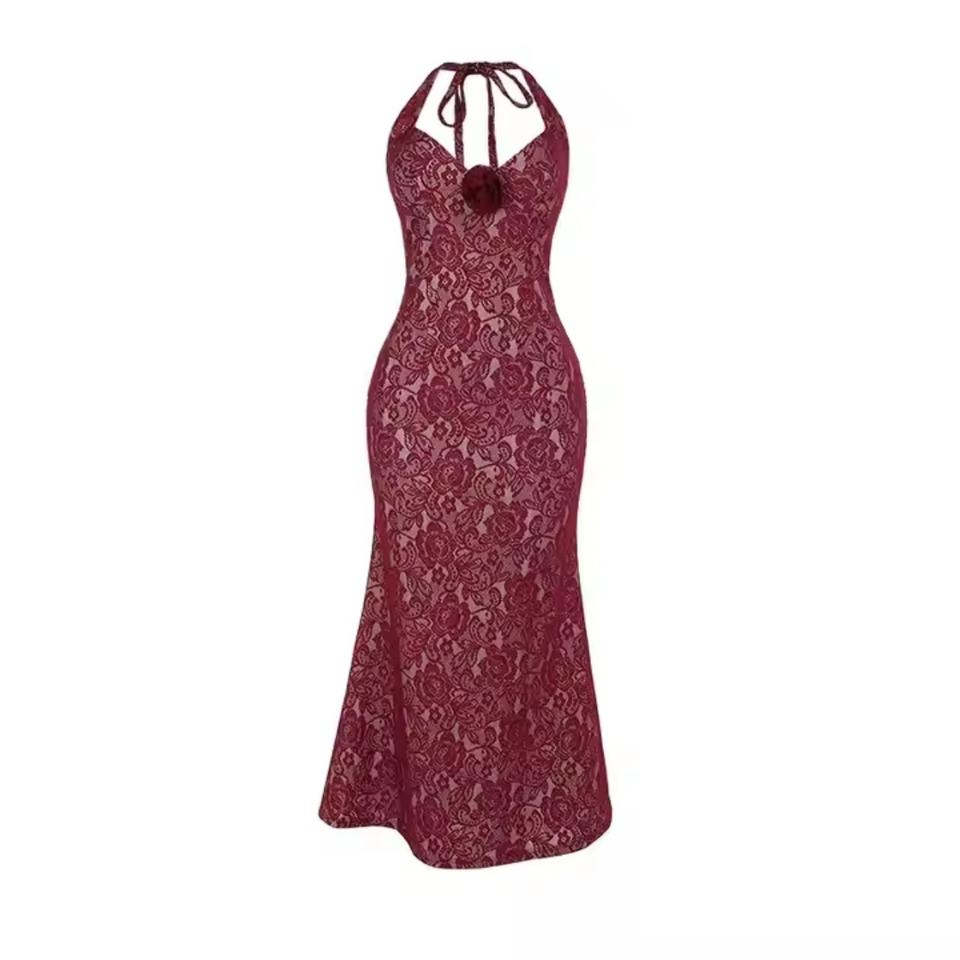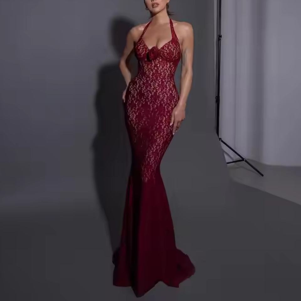ชุดเดรสลูกไม้สำหรับงานเลี้ยงฤดูใบไม้ร่วง คุณภาพสูง ราคาส่งถูก ดีไซน์หรูหรา แขนกุด คอลึก เปิดหลัง ทรงเข้ารูป ยาวแบบแม็กซี่ สำหรับผู้หญิง