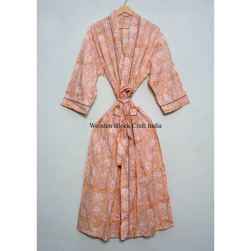 ขายส่งชุดกิโมโนผ้าฝ้ายอินเดียราคาถูก ผู้ผลิตชุดกิโมโนผ้าฝ้ายพิมพ์ลายด้วยมือสำหรับผู้หญิง ชุดกิโมโนยาวแบบดีไซเนอร์