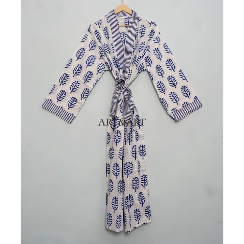 ชุดคลุมยาวพิมพ์ลายบล็อกทำมือสำหรับผู้หญิง ผ้าฝ้ายอินเดียแท้ 100% ระบายอากาศได้ดี แห้งเร็ว ดีไซน์สวย ราคาส่งถูกสำหรับฤดูร้อน