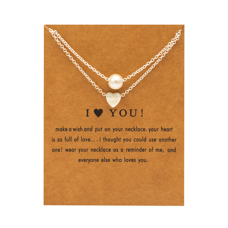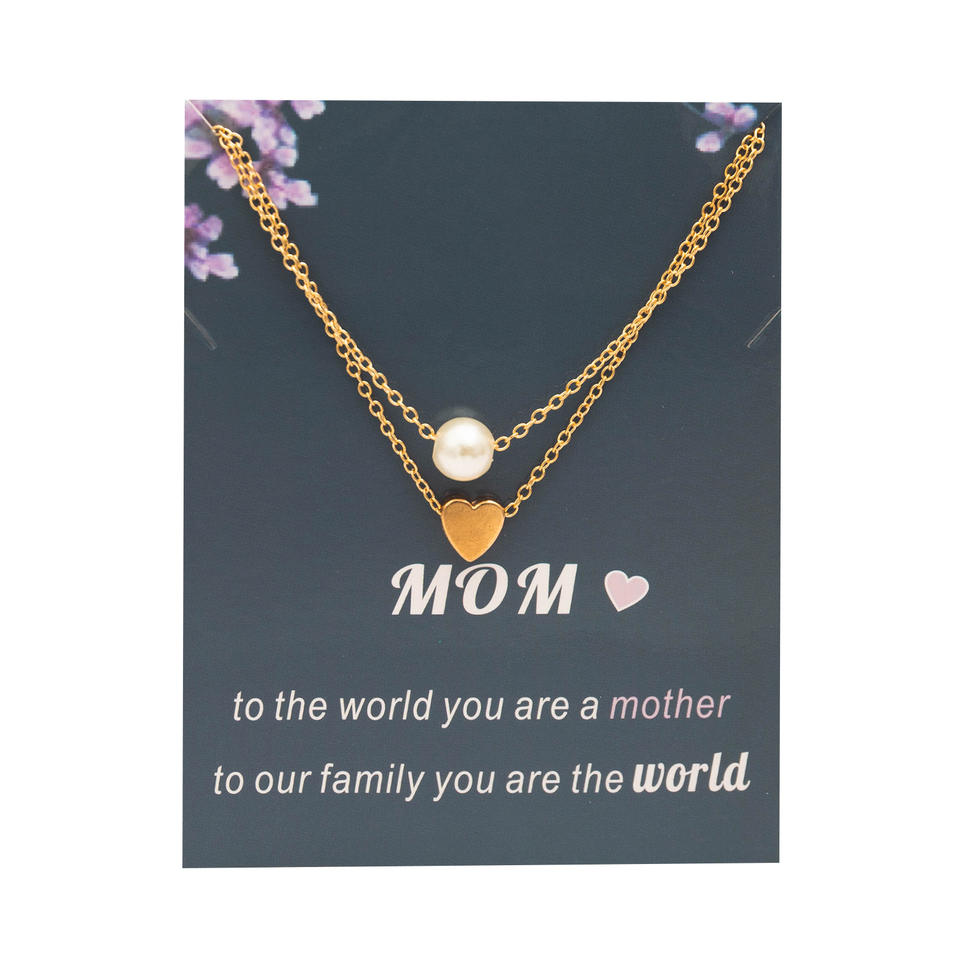 สร้อยคอจี้รูปหัวใจประดับมุกสีทองพร้อมการ์ดอวยพร ของขวัญนำโชคขายส่ง สำหรับคุณแม่และภรรยา