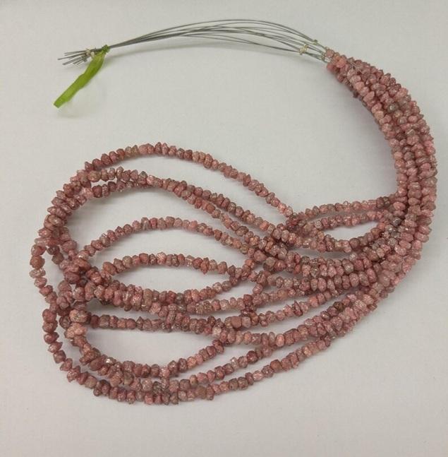 ลูกปัดเพชรดิบสีชมพูธรรมชาติแบบขายส่ง ขนาด 3-4 มม. รู 0.40 มม. ไม่ผ่านการบำบัด ได้รับการรับรองจากบุคคลที่สาม สำหรับทำเครื่องประดับ