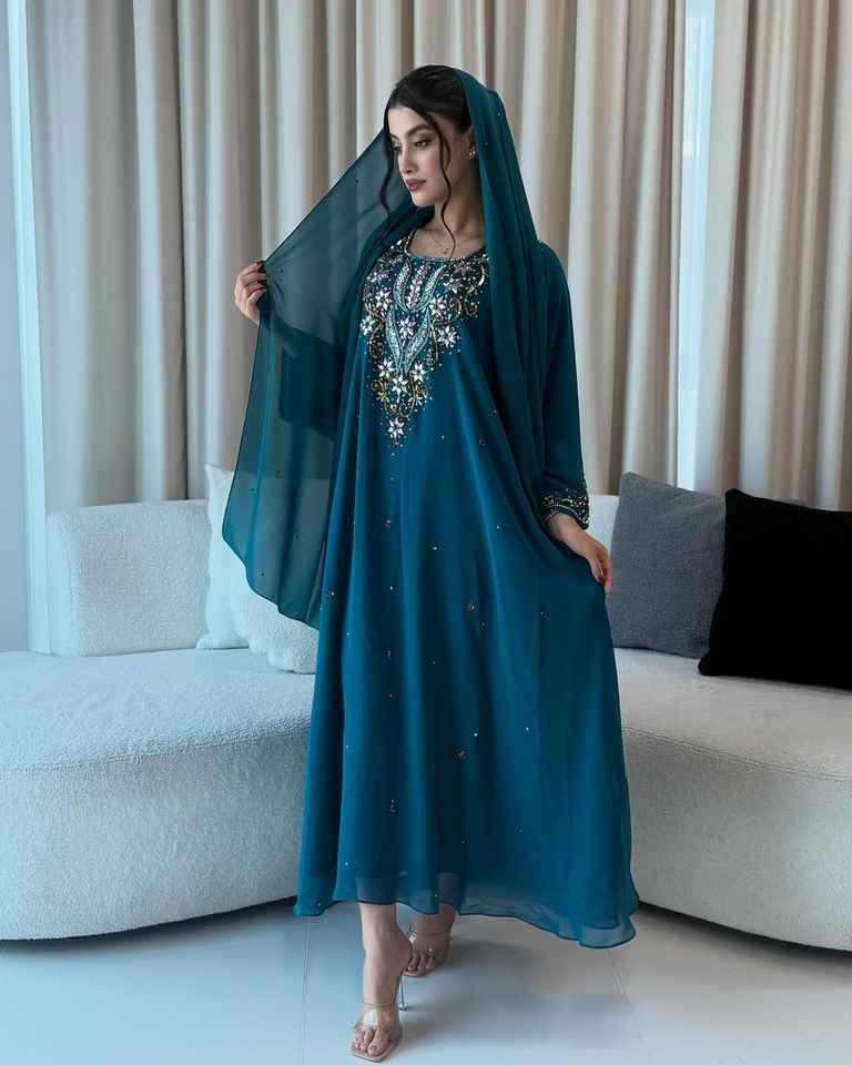 ชุดเดรสยาวมุสลิม 2 ชิ้น ผ้าชีฟองประดับลูกปัด ดีไซน์เรียบหรู ทรงเอไลน์ ซักได้ มีบราในตัว ขายส่ง