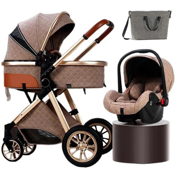 รถเข็นเด็กอลูมิเนียมพับได้แบบ3อิน1หรูหรารถเข็นเด็กแบบใหม่มีที่นั่งในรถน้ำหนักเบา