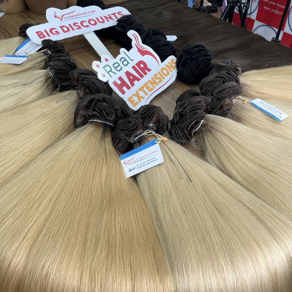 ผมต่อแบบลอนผูกด้วยมือสีตรงทั้งหมดที่ยังไม่ผ่านกระบวนการผมคนเวียดนาม100%