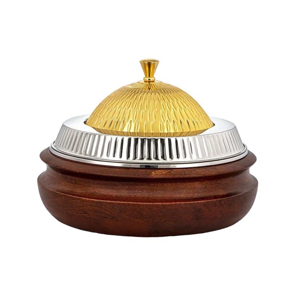 ภาชนะใส่อาหารทำจากไม้แบบแฮนด์เมดสไตล์อาหรับมีวัสดุสิ้นเปลืองสำหรับหม้อไฟโลหะทรงกลม