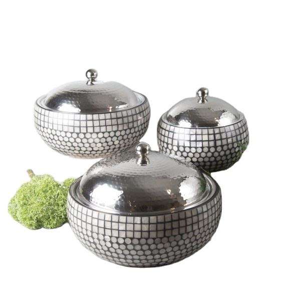 ชุดแคสเซอโรลทำด้วยมือสไตล์อาหรับประกอบด้วยอุปกรณ์หม้อไฟโลหะทรงกลมหรูหรา