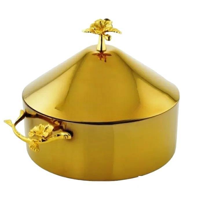 ภาชนะใส่อาหารทำจากไม้ทรงกลมทำด้วยมืออุปกรณ์ฮอตพอตโลหะแบบกลมสไตล์อาหรับ