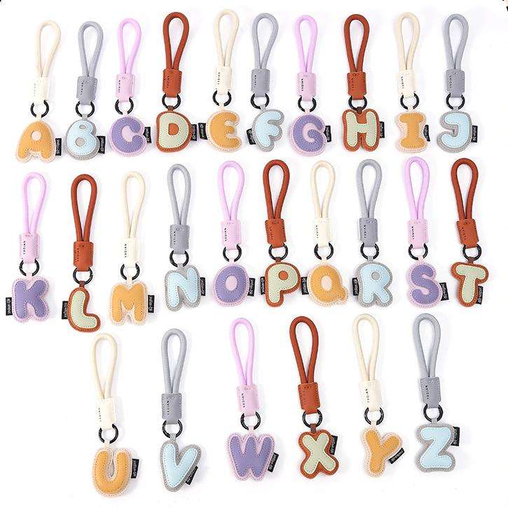 พวงกุญแจหนังน่ารักสำหรับเป็นของขวัญพวงกุญแจอุปกรณ์เสริมสำหรับกระเป๋ามีตัวอักษร26ตัวอักษร