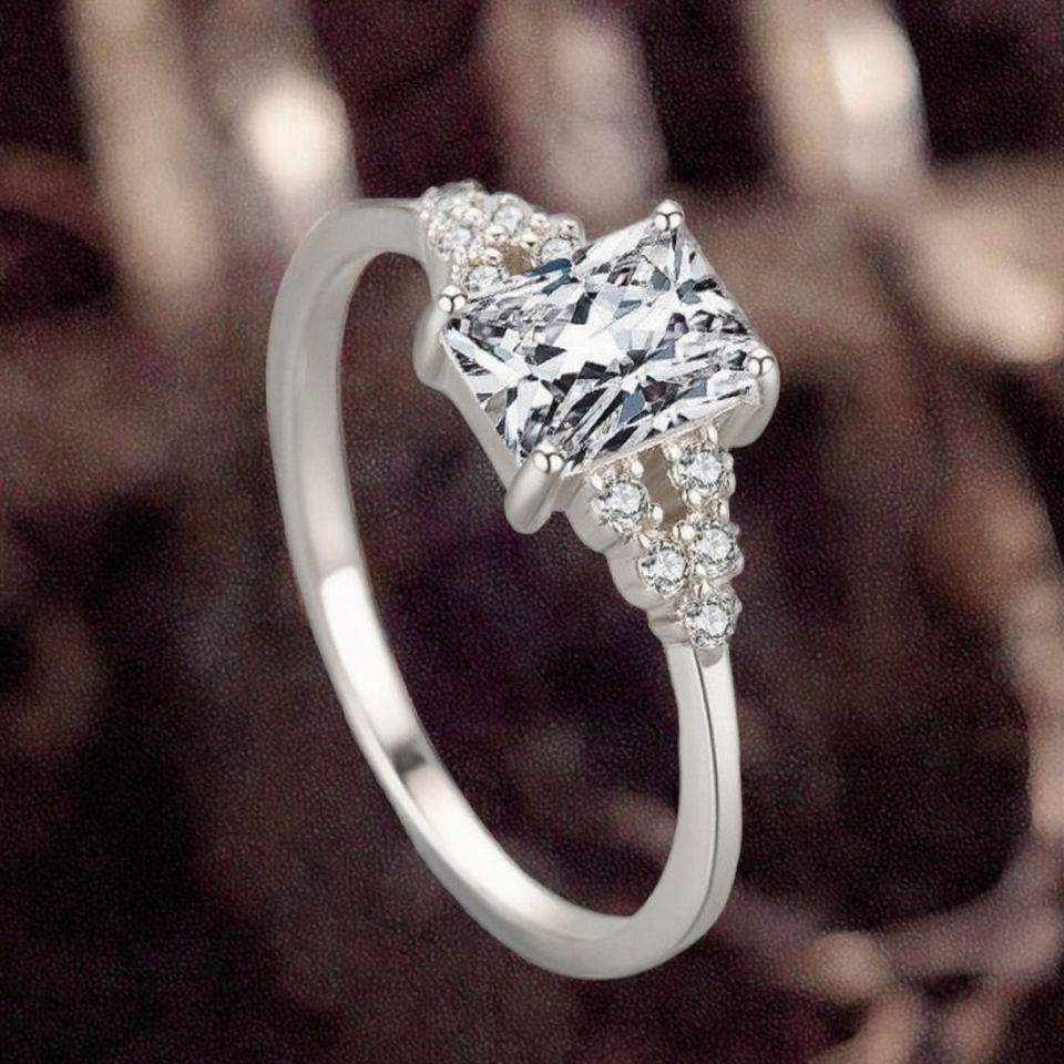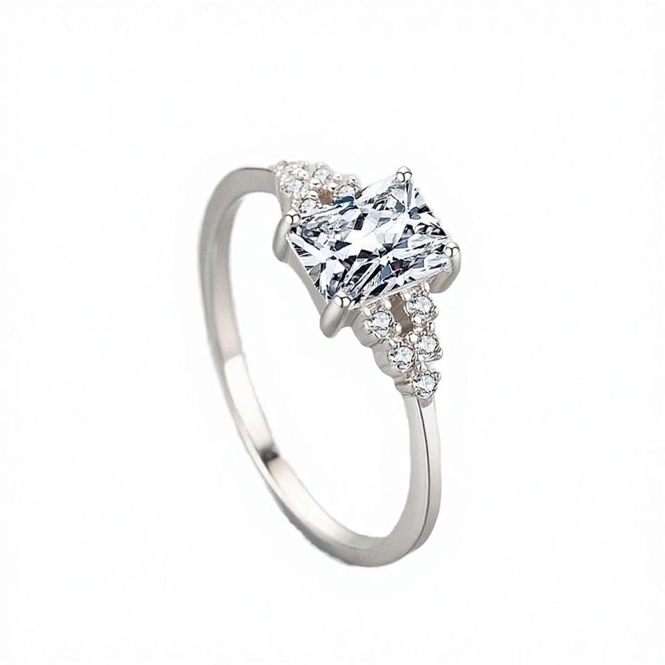 แหวนแต่งงานหรูหราคลาสสิกชุบโรเดียมประดับเพชรซิร์คอนเงินแท้ 925 สำหรับงานหมั้น งานแต่งงาน งานฉลองครบรอบ ขายส่ง