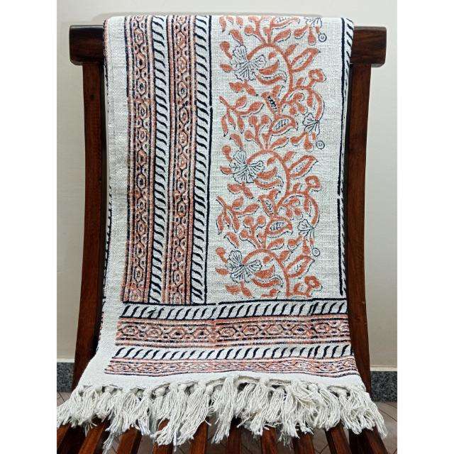 ผ้าห่มผ้าฝ้ายพิมพ์ลายแบบบล็อกมือพู่ปอมปอมเป็นมิตรกับสิ่งแวดล้อม50 "x 70" สไตล์โบฮีเมียน
